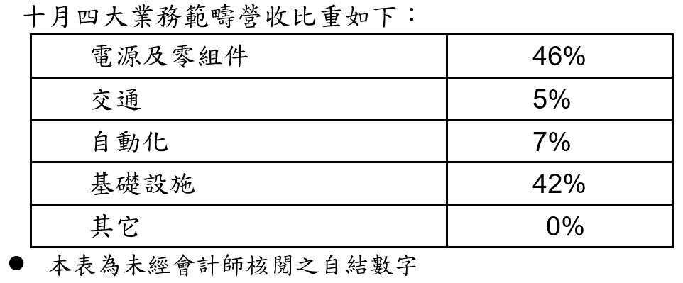 台达电子工业股份有限公司(10)日公布114年10月份合并营业额为新台币573.84亿元,较113年同期合并营业额新台币388.17亿元成长47.8%,较上月份合并营业额新台币570.61亿元成长0.6%;114年1~10月份累积合并营业额为新台币4,506.56亿元,较113年同期累积合并营业额新台币3,457.62亿元成长30.3%。