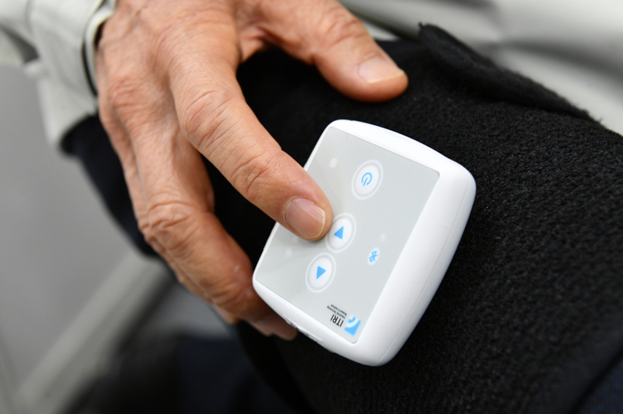 | 图左起为工研院院长张培仁、工商协进会理事长吴东亮代表双方签署策略夥伴协议,将以生医为起点,推动跨域创新与健康产业升级。图二为工研院研发的巴金森氏症穿戴数位医疗装置。 |