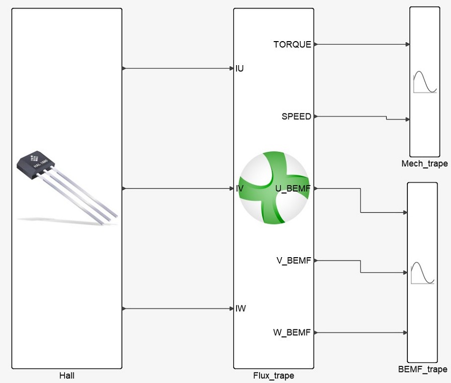 <>在直流無刷馬達中,電磁模擬軟體不僅可設計馬達磁路本體,也可決定霍爾元件位置。本文採用Altair的電磁模擬軟體Flux進行馬達本體建模,在理論決定霍爾元件位置後提取磁通密度,再搭配系統開發平台軟體建立六步方波電流驅動模型,完成符合物理定義的驅動與馬達整體模型。