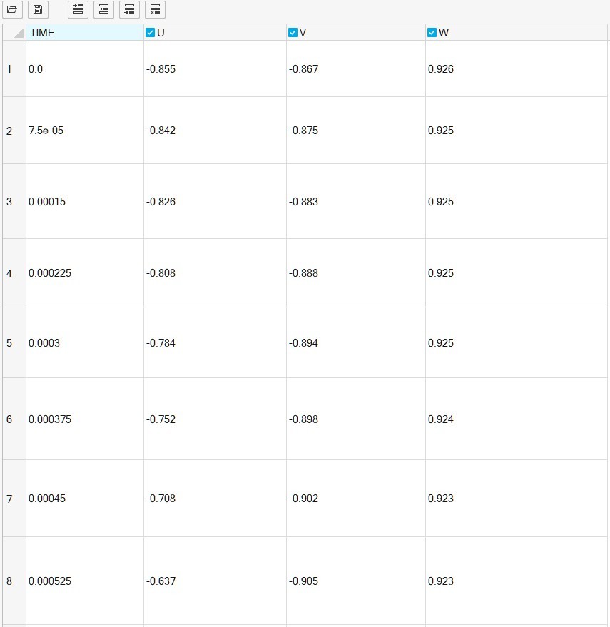 將三個霍爾元件位置處的磁通密度數值從 Flux內匯出後,再於Activate內匯入(圖8),經過訊號處理設定切換0與1狀態的數值後,即是霍爾元件的狀態表(表3),進而完成建立六步方波模組。