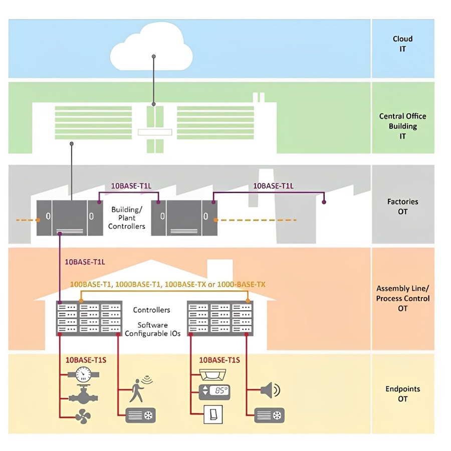 OT網路和IT網路需要實現互操作性和安全性,而10BASE-T1S乙太網的出現為二者的結合創造了新的商機。資料可以從網路邊緣的節點進行存取,並可用於實現新的智能預測服務以及資產跟蹤和管理解決方案。