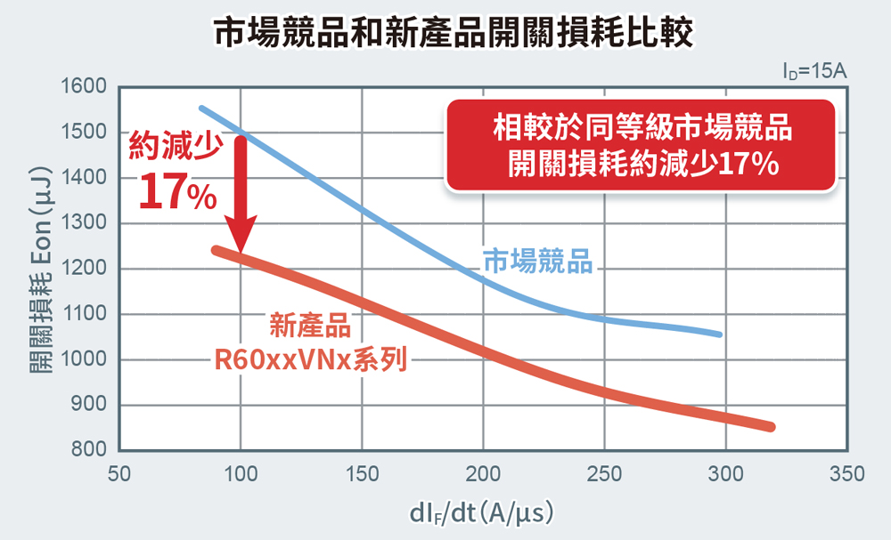 | 圖5 : R60xxVNx系列與市場競品的開關損耗比較 |