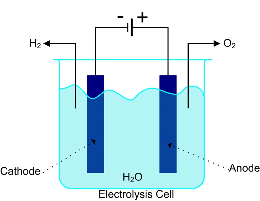 將水電解,可從中分離出氫。此過程的副產品是氧。電解過程需要使用穩定、高位準的直流電。此過程在電解池或電解槽中反應;電解池或電解槽會包含進行電化學反應的陽極(正極)和陰極(負極)。液態或固態電解質包圍電極並在電極之間傳導離子。依據所採用的化學反應,可能需要加上催化劑以提高反應速率。此電解池由穩定的高位準直流電源或電源供電(圖一)。