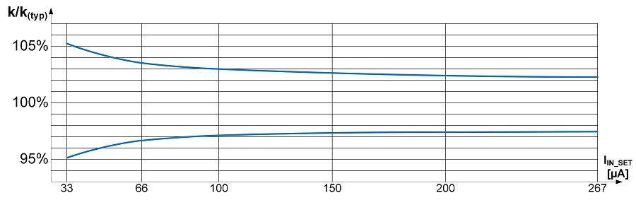 電流精準度是以 K 因子定義;K 因子是輸出電流與參考電流之間的比率,部分地區規定 LED 電流要達到 5% 的精準度。裝置提供有利的 EMC 行為,可減少使用額外濾波器元件打造穩定系統,進而降低系統費用。