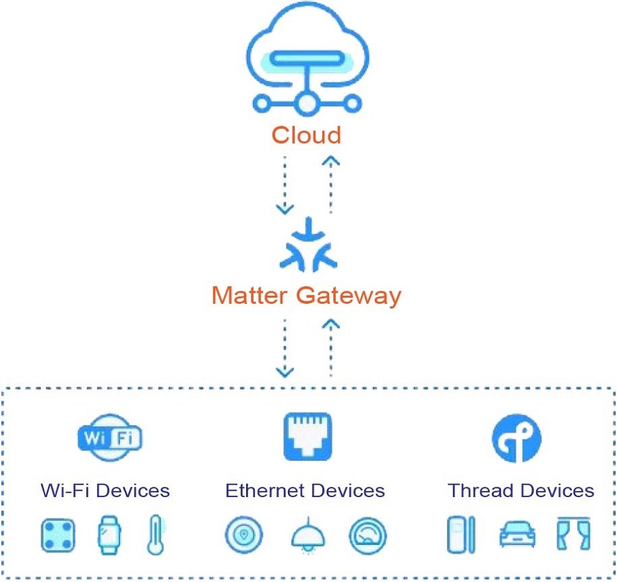 此外,Matter協定也引入了Matter Gateway的概念。可透過Matter Gateway充當連接不同協定和技術的橋樑,使各種智慧設備能夠在Matter生態系統中協同工作。利用連接Matter Gateway,用戶可以在Matter協定的統一管理下無縫整合現有的智慧家庭設備。