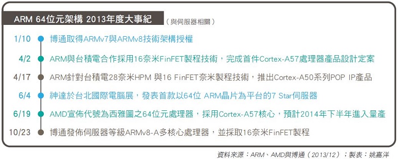 | 表一 : ARM 64位元架構於2013年年度大事紀(與伺服器相關) |