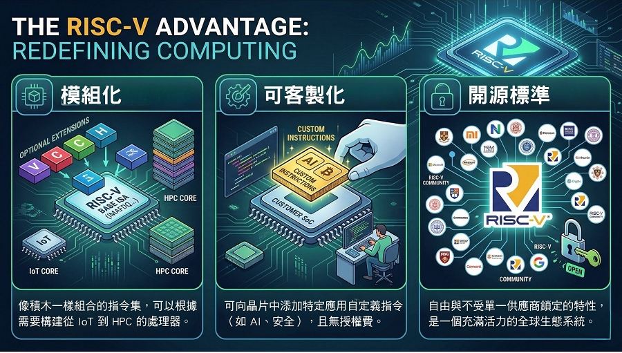 RISC-V之所以能迅速崛起,核心在於它解決了專有架構的三大痛點:授權成本、研發自由度、以及地緣政治風險。