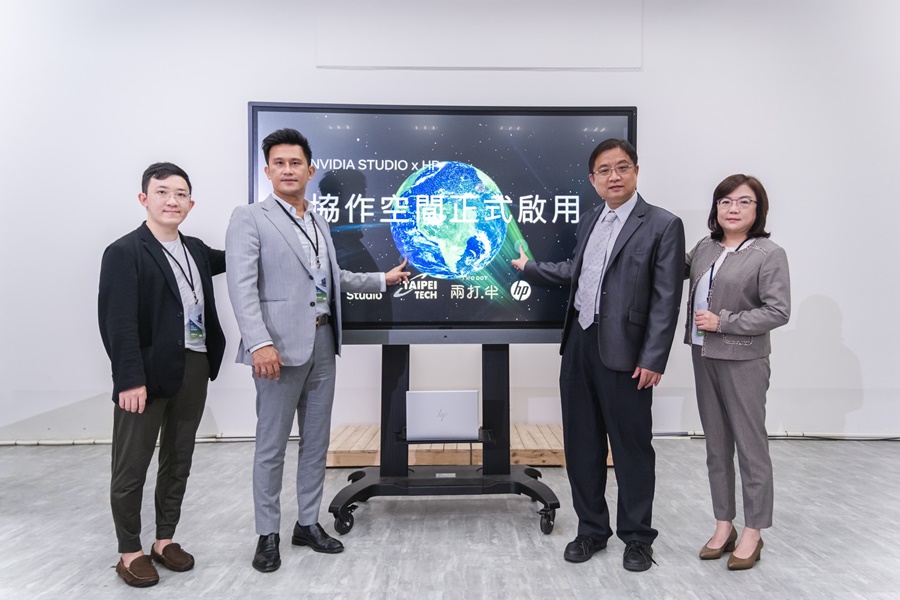 | 「NVIDIA Studio x HP 协作空间」正式启用,由 (左起) 杰出校友「两打半」互动有限公司执行长宋兆祥、NVIDIA 台湾区业务协理??亦为、台北科技大学主任秘书吴建文以及 HP Taiwan 董事长王静秀共同揭幕 |