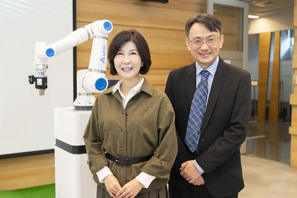 | 台达基金会??董事长郭珊珊(左一)、台达基金会执行长张杨乾(左二)分享台达协作型机器手臂助力珊瑚复育。 |
