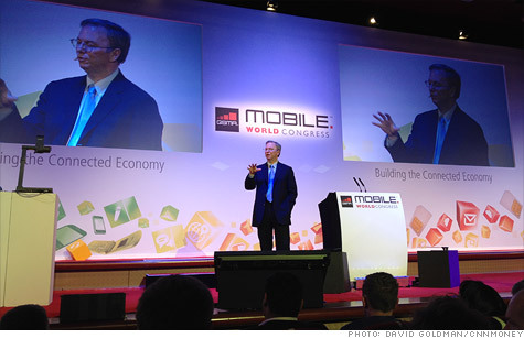 北京时间2月29日凌晨消息,谷歌董事会主席埃里克·施密特(Eric E. Schmidt)周二在巴塞罗那举行的世界移动大会上(MWC)发表了主题演讲。在讲话中,施密特表示他期望在未来能够将Android打造成为高速连接整个世界的下一代通讯工具。并且能够让所有人都能够享受到该产品带来的优越体验。