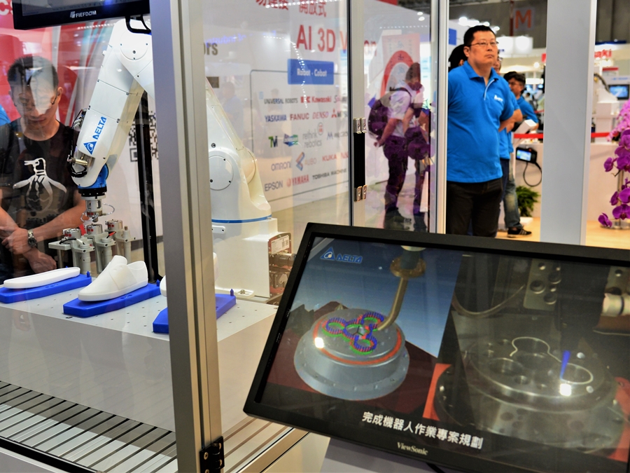 尤其在智能設備方面,展出機器人模擬整合平台(DRASimuCAD)支援CAD/CAM完整設計功能,強調一套軟體即可協助客戶虛實整合,快速建置機器人工作站的設計、自動路徑生成、模擬等功能,現場並展出製鞋業應用,模擬快速完成塗膠、去毛邊等加工作業,為客戶節省大量時間。