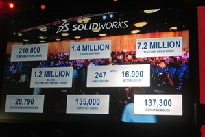 而SolidWorks新任執行長一職,則由研究與發展部門副總裁Gian Paolo Bassi接掌,所以今年對於SolidWorks也別具意義。Gian Paolo Bassi在大會中指出,SolidWorks在網路許多指標性的表現上都相當出色,這也一定程度地印證了SolidWorks在社群方面的成就,像是臉書粉絲團的人數就有140萬人,論壇成員為137,300人,通過認證的使用者則有135,000人,超過兩萬八千所以上的大專院校與高中,使用SolidWorks的工具,線上影音網站Youtube的瀏覽量則高達720萬之多。