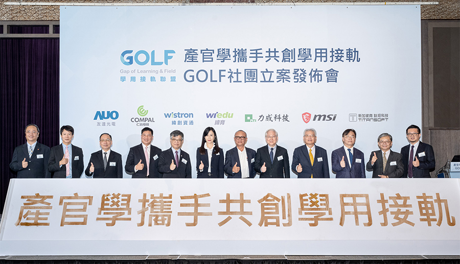台灣首個由企業發起的GOLF(Gap of Learning & Field)學用接軌聯盟,於今年10月正式立案成為社團法人?由友達光電、仁寶電腦、緯創資通三家企業出資百萬,推動社團正式立案,今日特別舉辦立案記者會,邀請科技部長吳政忠、教育部政務次長劉孟奇,與立法院教育及文化委員會召集委員萬美玲,及聯盟校企共聚一堂,持續為台灣的產學合作投注能量。