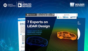 贸泽电子 (Mouser Electronics) 与Maxim Integrated(现已由ADI并购)合作推出最新电子书《7 Experts on LiDAR Design》(7位专家联手献策:LiDAR设计),探索光线侦测与测距(LiDAR)系统的优势与挑战。在这本电子书中,产业专家探讨了在开发全新LiDAR解决方案时的一些最有前景的商机,以及会遇到的一部分难题。