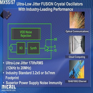 麥瑞半導體公司推出MX55/57 FUSION晶體振盪器時鐘(XO)解決方案。這些器件採用標準的5毫米×7毫米或3.2毫米×5毫米封裝,提供行業領先的170fsrms(12kHz至20MHz)相位抖動性能。這些晶體振盪器適用于高達840MHz的寬廣頻率,支援包括10/40/100G乙太網、光通信、SAS和PCI express等應用的標準頻率。所有配置選擇均可批量供貨,交貨期短,多數配置的價格低於千顆批發單價10.00美元。