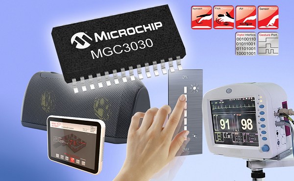 Microchip(微芯科技)的專利GestIC產品家族第二位成員問世。全新MGC3030 3D 手勢控制器配有專注於手勢檢測的簡化使用者介面選擇,可令消費電子與嵌入式設備添加3D手勢識別設計實現真正的一步到位。MGC3030採用易於量產的SSOP28封裝規格,將3D手勢控制功能擴展至玩具、音訊和照明等大量生產對成本敏感的應用。