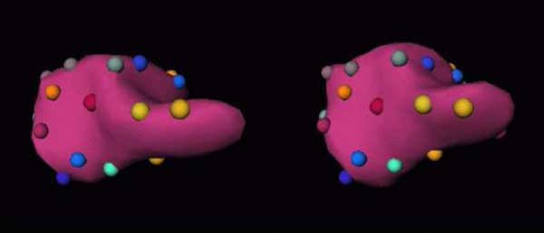 Two 3-D models of wrist bones. Credit: Elisabeta Marai, Brown University.