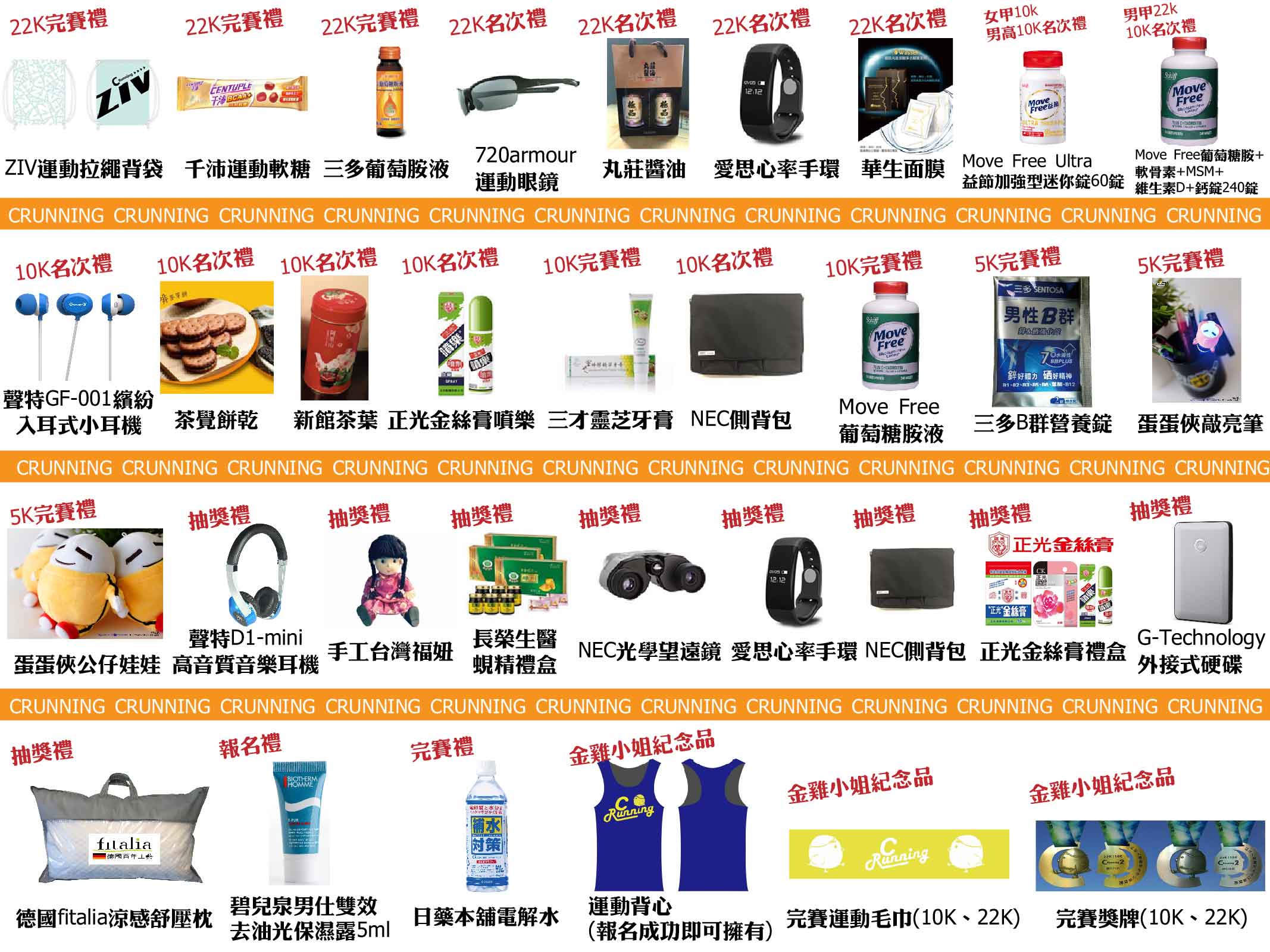 挑戰組22K及健康組10K報名費須另付晶片押金100元。
