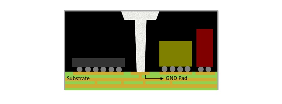 隨著SiP技術的不斷進步,傳統的金屬遮罩(Metal Can)焊接屏蔽方式,因其占用空間大、設計靈活性差,只適用於非模具(Non-Mold)產品等缺點,已逐漸被淘汰。環旭電子首創「Trenching & Filling epoxy 隔間屏蔽製程」突破這一限制,為SiP產品的發展提供有力支持。