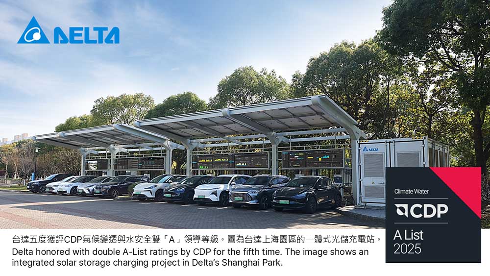CDP(原碳揭露專案)公布 2025 年評鑑報告,台達在「氣候變遷」(Climate Change)與「水安全」(Water Security)兩大環境主題評鑑結果中,五度獲得雙「A」頂尖評級(A List)成績,本年度全球共有超過 22,000家企業參與CDP評鑑,僅有不到1%的企業獲此殊榮肯定。台達整合氣候變遷、水安全、生物多樣性等多重環境議題進行管理,不但提升永續治理管理層級,亦積極推動範疇三減碳,攜手價值鏈朝永續淨零目標邁進。