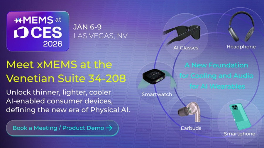 xMEMS Labs今日宣布将叁加CES2026,於1月6日至9日在拉斯维加斯展示专为AI穿戴与行动装置打造的两项创新技术。本次展出核心为μCooling微型散热晶片与Sycamore矽基扬声器,透过固态piezoMEMS技术解决边缘AI设备在微型化趋势下的声学与散热难题,抢攻快速成长的AI硬体市场。