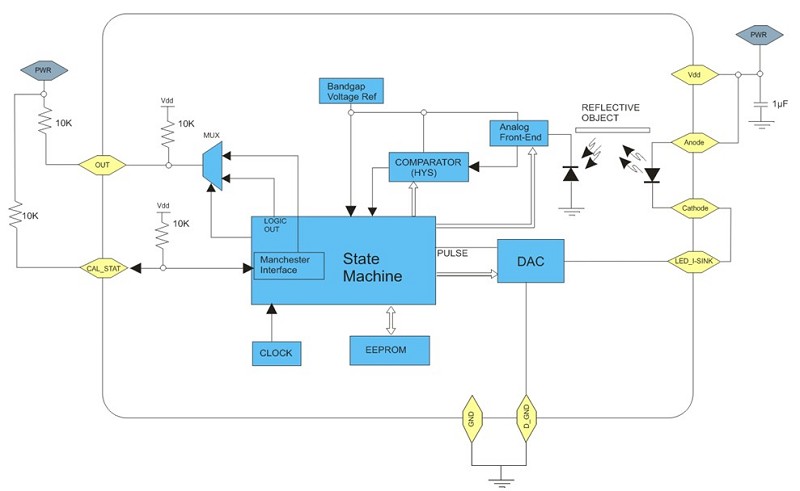在醫療應用中,OPB9000 可用於醫院、實驗室和可攜式設備,用於感測介質和濾芯是否存在以及污染物和液位感測。具有25k lux 環境光抗擾度,可以在不能使用其他光學感測器的情況下使用。它還整合了其他設備中沒有的各種功能,例如:自校準和自動增益控制、溫度補償電路、可編程的對比靈敏度以及一個行業標準通信介面。此外,OPB9000 還具有僅 6 微秒的回應時間。