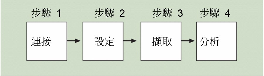 邏輯分析儀進行量測和分析訊號的方式與示波器不同,邏輯分析儀不會量測類比訊號的細節,但卻會偵測邏輯臨界值層級。也就是說,當邏輯分析儀連接至數位電路時,工程師只需考慮訊號的邏輯狀態,邏輯分析儀會自動尋找兩種邏輯層級。而用邏輯分析儀來操作進行待測物連接、擷取及分析數位訊號,大致分為四個步驟,包括連接、設定、擷取以及分析與顯示。