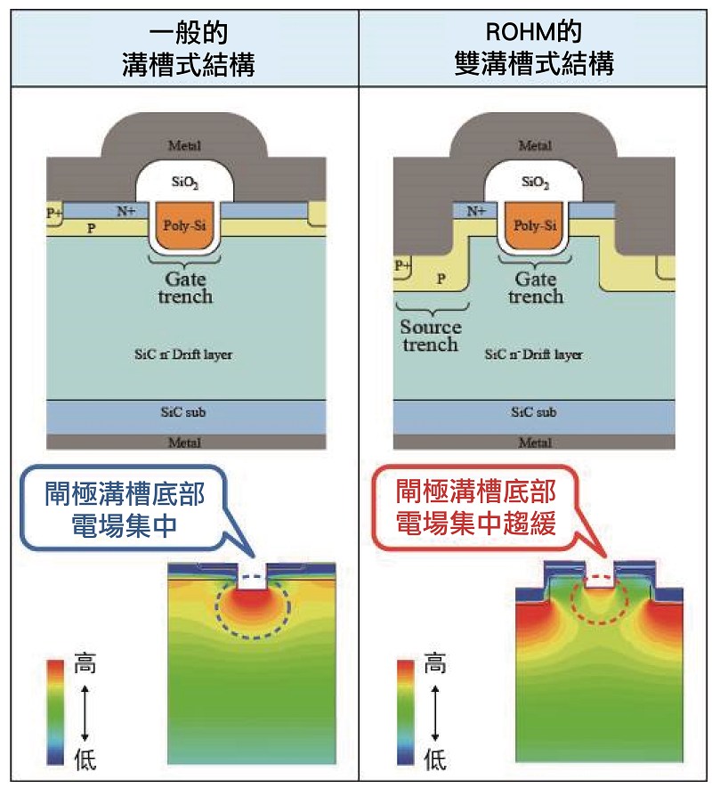 | 溝槽構造SiC-MOSFET可大幅降低導通電阻 |