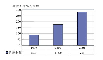 《圖一 2001~2005年中國大陸積體電路銷售情況》  資料來源:CCID;工研院經資中心ITIS計畫(2002/09) |