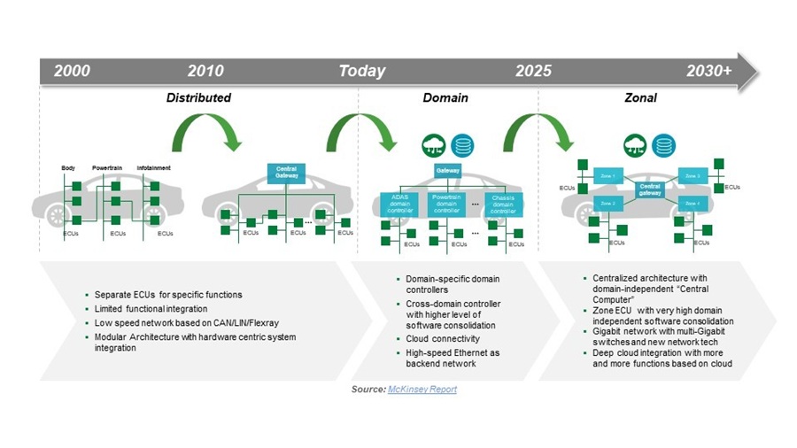 隨著現代汽車的不斷發展,其電氣和電子(EE)架構必須進行調整,以有效管理日益增長的電力需求。傳統分散式和基於域的控制系統在複雜性、大量佈線和通訊瓶頸等問題上舉步維艱。分區控制架構透過將電子控制單元(ECU)整合到局部區域、最佳化功率分配、減少佈線和提高系統可靠性來應對這些挑戰。