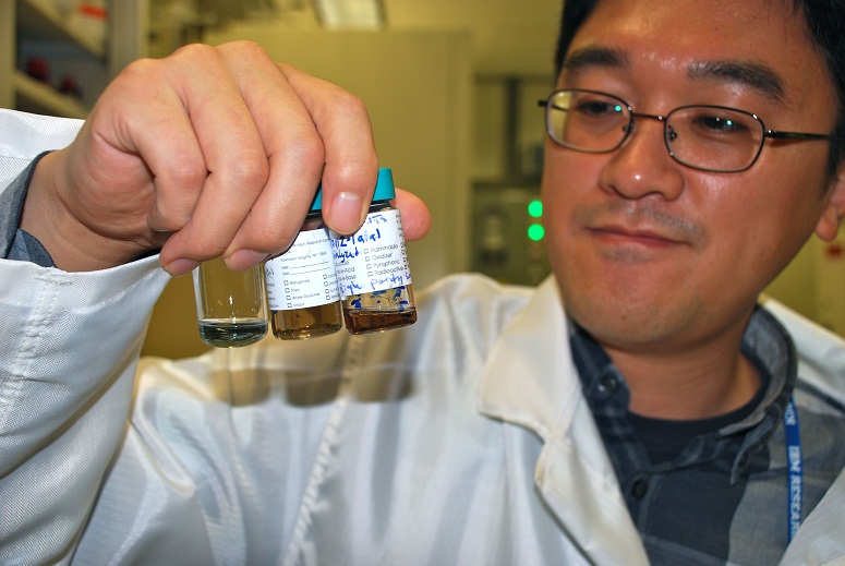 | 圖二 : IBM研究員觀察不同的碳奈米管解決方案(圖片來源:IBM) |