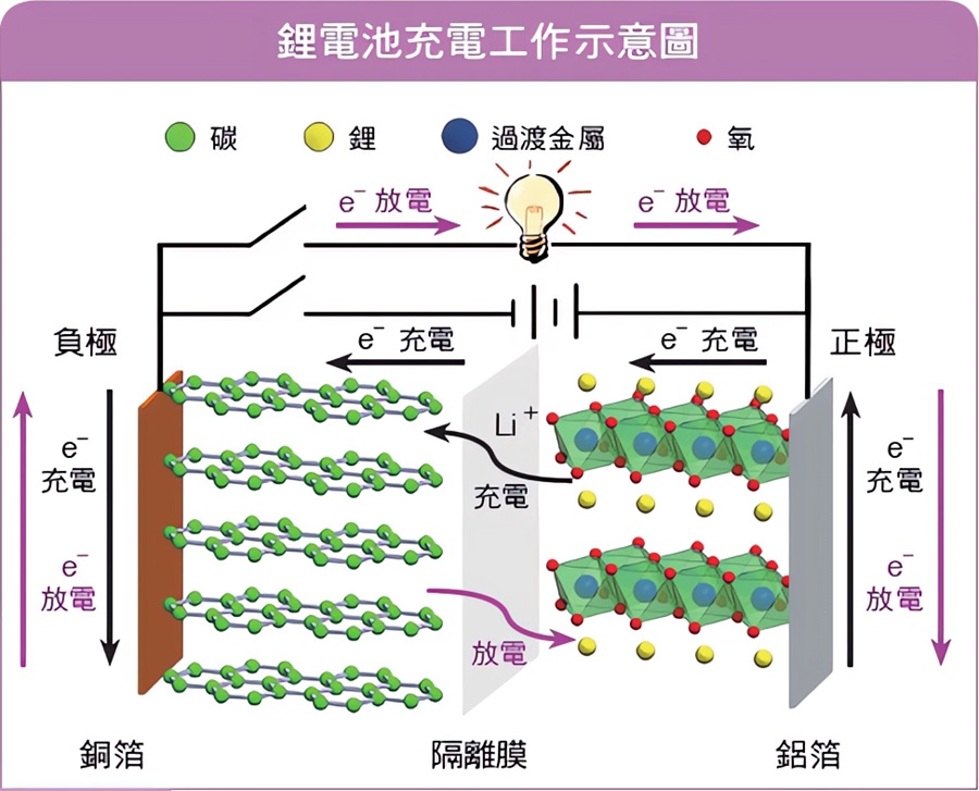 | 圖二 : 鋰電池充放電工作原理(source:科學發展(2019)[3]) |
