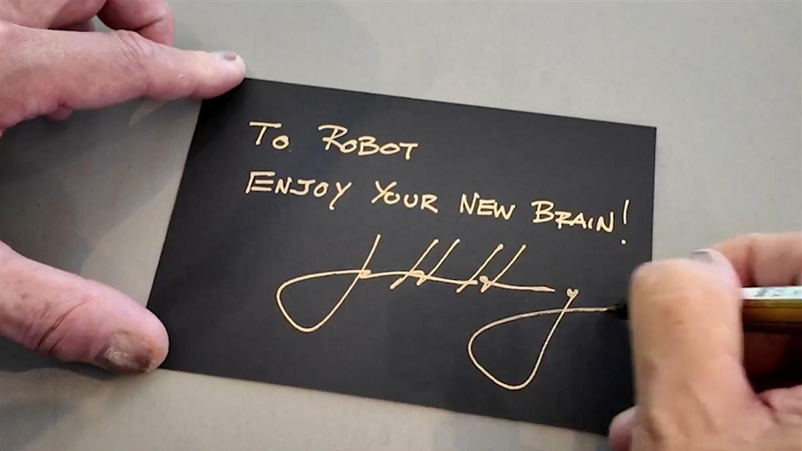 圖一 : 黃仁勳親手寫下給機器人的小卡片。