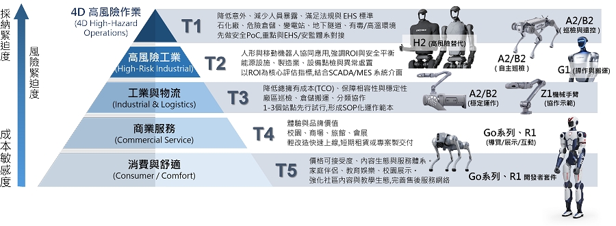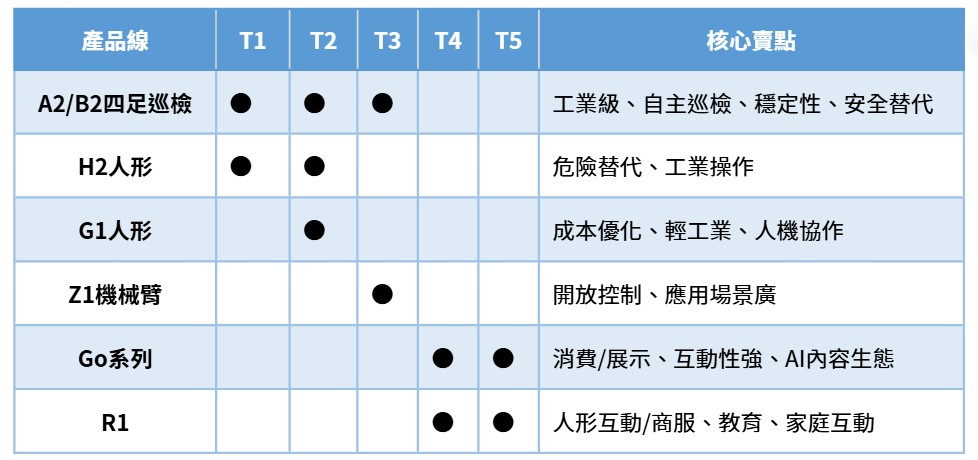 圖四 : 宇樹Unitree:T1-T5市場分層