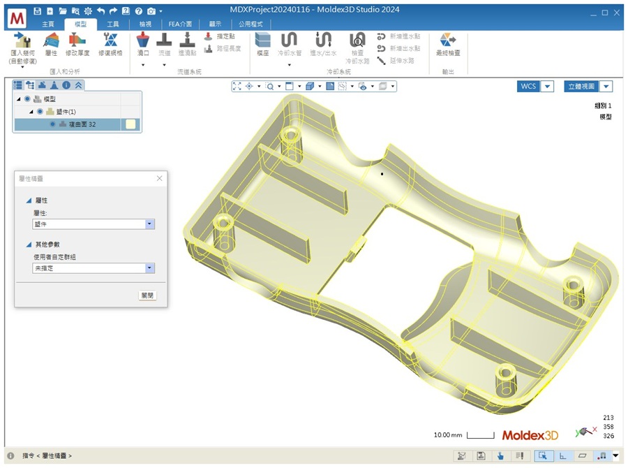 雖然Shell模組能夠快速完成分析結果,但由3D模型轉換成2.5D的網格模型需進行前處理的動作,此動作需要模型轉換的技術門檻,目前選擇的工具除了Moldex3D-mesh (Rhino),在Moldex3D Studio裡也有基本的網格前處理功能。