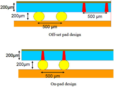 圖6為 NEC SMAFTI 技術基本說明。這是一個堆疊記憶體(上層)與處理器(下層)的系統,從圖上可以知道上層的記憶體會透過外包的樹酯與下層的處理器相連,樹酯中間會有貫穿的電極導孔,這個電極導孔其組成是鎳 (Ni), 銅 (Cu)與無電解金 (Electroless Au)。上下兩層的電路便透過這個電極導孔作電器與機械的相連。最後透過下層的 BGA 錫球與外界相連。此技術顯然比傳統的 SiP 更簡單,因此可以較低的製作費用,更重要的是可以提供更高的記憶體資料寬度。根據NEC 的說明,這個技術可以堆疊高達8 層的記憶體。