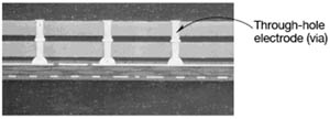 此為 Renesas 2008 的名詞。這個名詞的特點是他強調了「電極」(electrode),也就是穿過Si 的一個電極,這樣的概念與我們平常視覺上可看到的表面電極不同,他強調這個電極是穿洞的。圖 8是Renesas 所提供的圖,當然看來就是TSV。