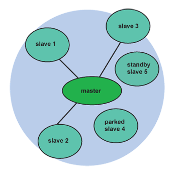 Piconet(圖一)為可連接達8個裝置的特定網路(1主7從)。一旦相容裝置進入有效距離,該網路就會立刻形成,也就是不需要集線器或存取點。Scatternet(圖二)即為兩個或更多個Piconet產生重疊的情形。
