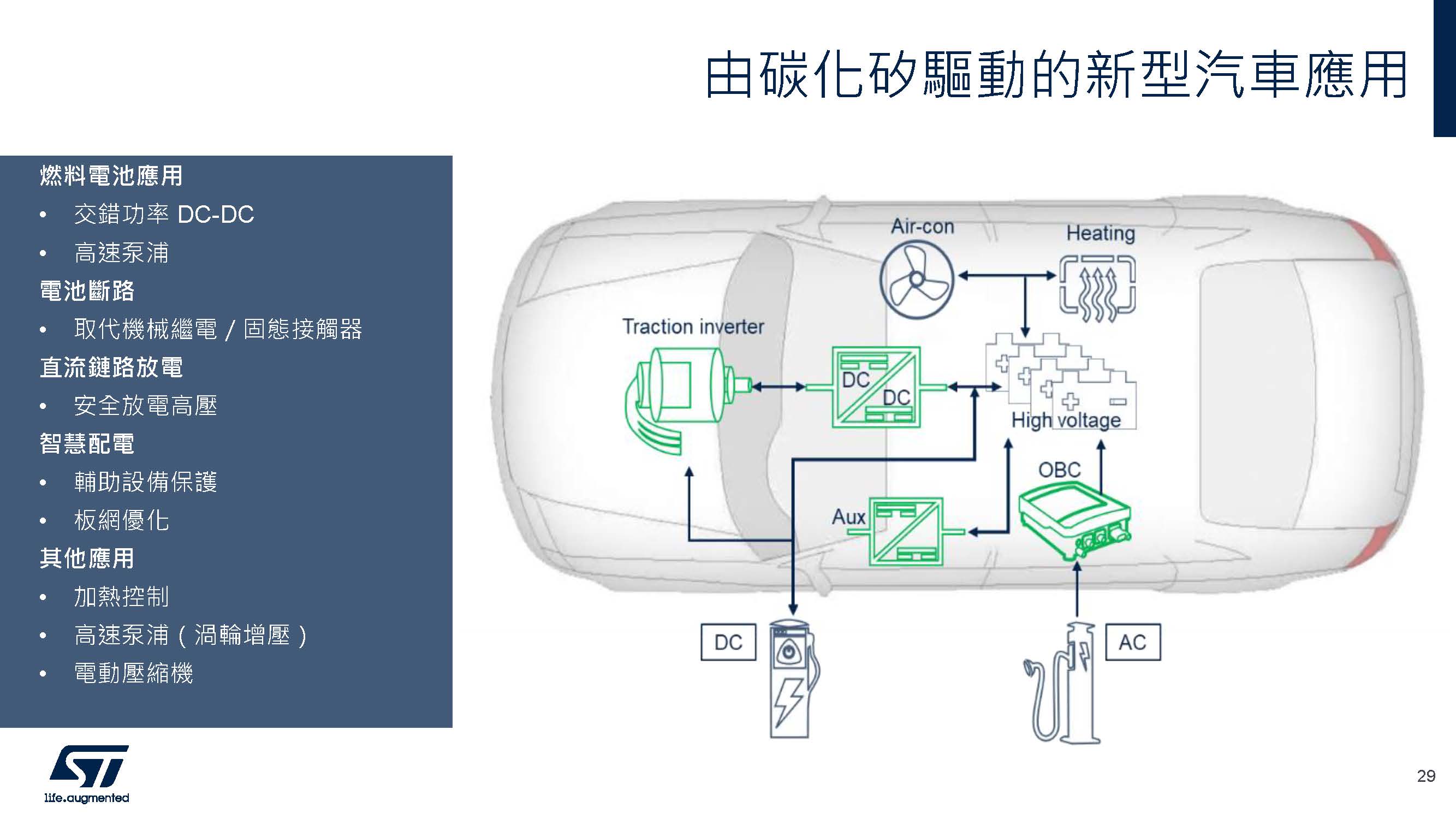 碳化矽作為一項關鍵技術,憑藉其優異的功率效率和性能,已廣泛應用於從車用領域(尤其是電動車和混合動力車)到工業領域(如人工智慧伺服器和可再生能源系統)等多個領域。意法半導體中國及APeC車用SiC產品部門經理Gaetano Pignataro指出,儘管傳統的技術,如IGBT和MOSFET,仍然佔有主導地位,但碳化矽正迅速成為未來功率電子領域的核心,特別是在高功率應用中。