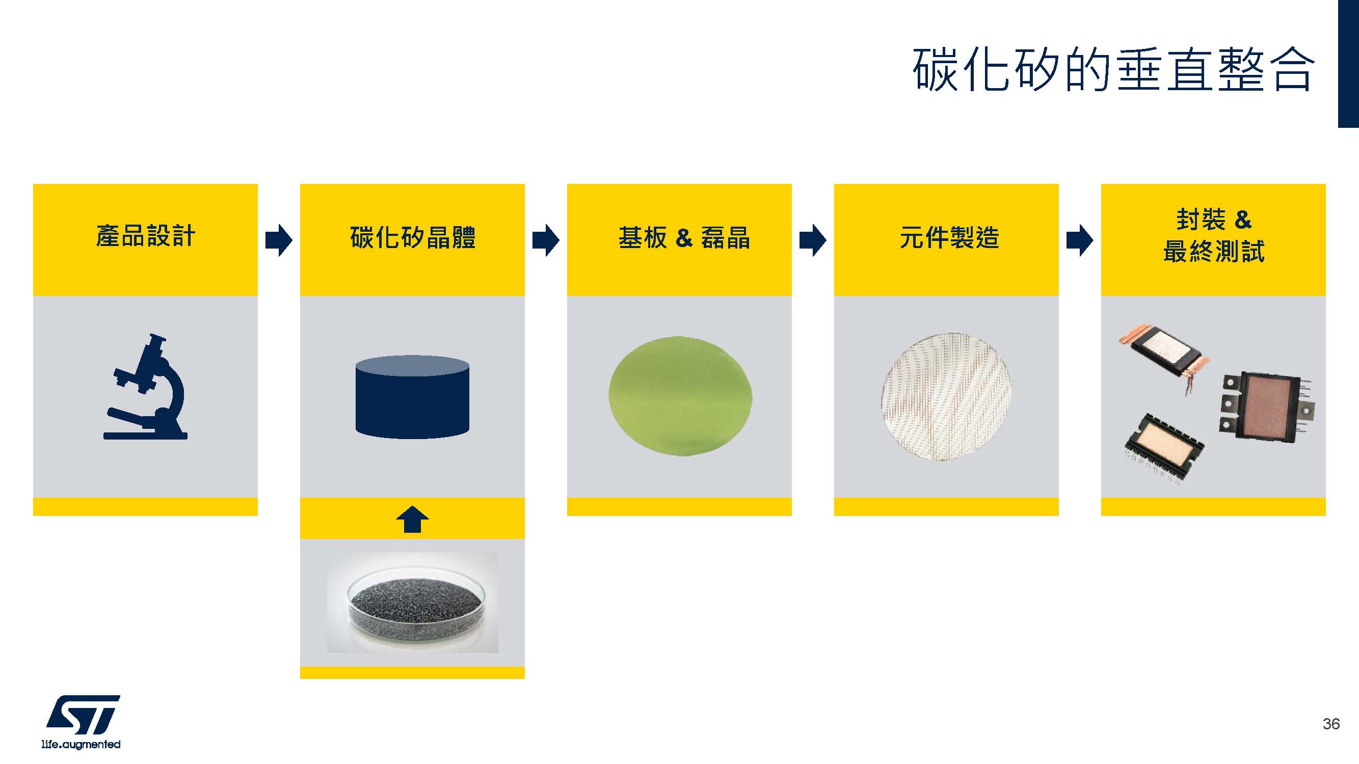 Pignataro強調,ST的垂直整合策略是其成功的核心之一。從原材料到最終產品的整個製造過程,ST都能夠進行全面掌控,這使得他們能夠更有效地控制品質並降低成本。尤其在碳化矽材料的製造方面,ST自主管理晶圓生產過程,並且掌控從碳化矽粉末製造晶棒的關鍵步驟。這一過程非常耗時且成本高,但其對最終產品的品質至關重要,ST能夠通過內部生產來確保高品質的基板。