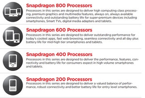 4.Qualcomm Snapdragon 800、600、400、200系列处理器