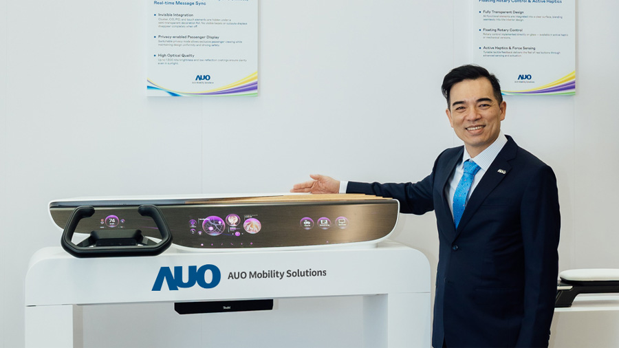 在显示技术与美学介面方面,友达推出全球首款Aero Module透明Micro LED显示模组,并以INVISY系列重新定义座舱设计。透过「随选显示」(Display on Demand)概念,让介面能隐於内装并仅在操作时显现,例如整合AI监控驾驶注意力的DriverAware HUD抬头显示器,以及无缝整合仪表与中控屏的Horizon Intelligent Dash,为驾驶提供直觉且不受干扰的安全体验。