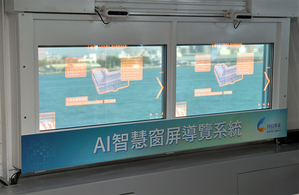 由經濟部技術處指導推動,透過友達光電、工業技術研究院與船舶中心三方合作,於高雄亞灣智慧渡輪率先導入最新Micro LED透明顯示器,虛實整合「AI跨屏導覽系統」打造智慧窗屏,除支援景點導覽,亦應用多項先進人工智慧技術,如跨屏定位、地景辨識、人臉朝向辨識及AIS資訊融合等互動科技。
