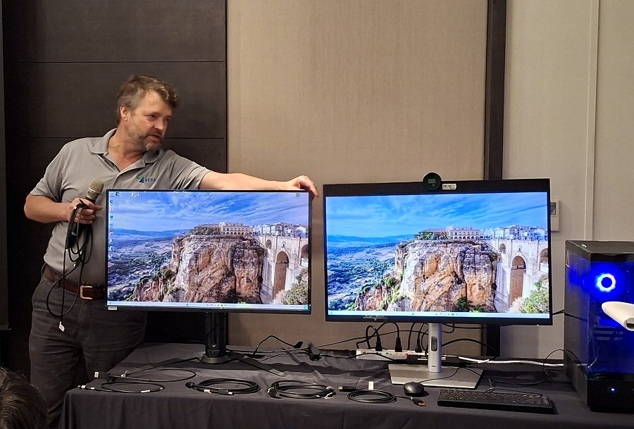 VESA合規計畫經理Jim Choate針對傳輸技術說明產品特色,全新DP80LL(Low Loss)主動式超高位元率(UHBR)纜線可支援長達三公尺、最高80 Gbps的傳輸速率,是現有DP80被動式纜線長度的三倍。此一設計突破高頻寬傳輸的物理限制,讓高階遊戲與專業工作站得以在更彈性的空間中運作,充分發揮DisplayPort 2.1b的效能。VESA指出,隨著各式遊戲產品陸續上市,DP80LL將成為新世代顯示裝置不可或缺的關鍵配件。