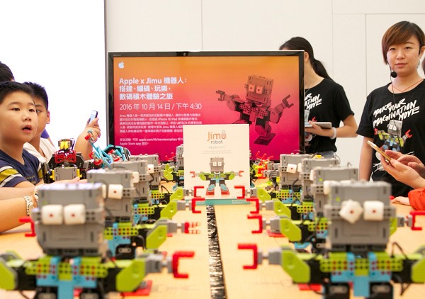 优必选科技于香港新城市广场Apple Store展示如何组装拼搭出独特的Jimu机器人。 (source: UBTECH ROBOTICS)