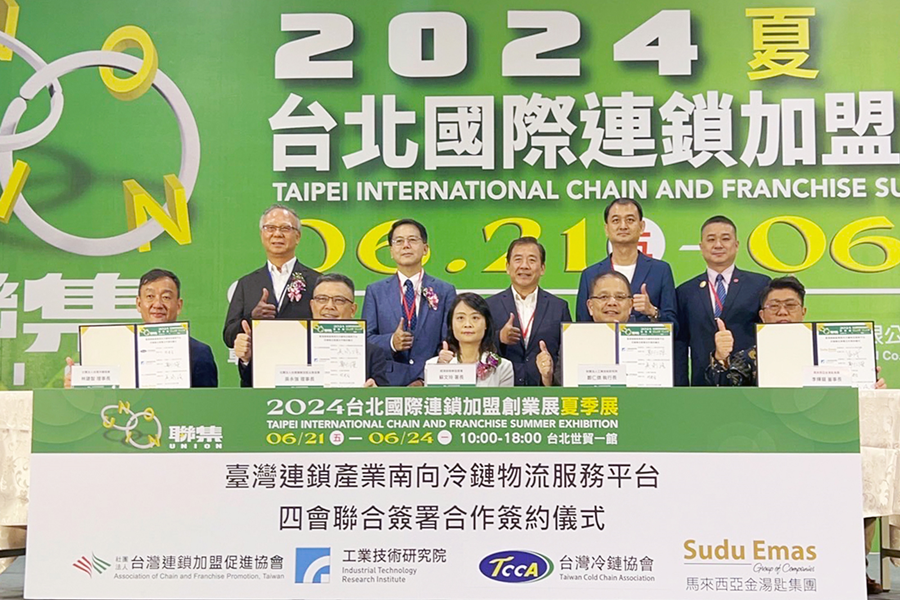 在常年处於热带气候的东南亚市场,为了尽可能降低农渔作物运送的高耗损率,冷链极其重要,而被许多当地国家列为重要发展政策之一。在经济部商业发展署指导下,工研院近日也携手台湾连锁加盟促进协会、冷链协会合作,并与马来西亚金汤匙集团(Sudu Emas)於2024台北国际连锁加盟创业夏季展,进行四方合作意向书签约,共同开拓马来西亚冷链市场。