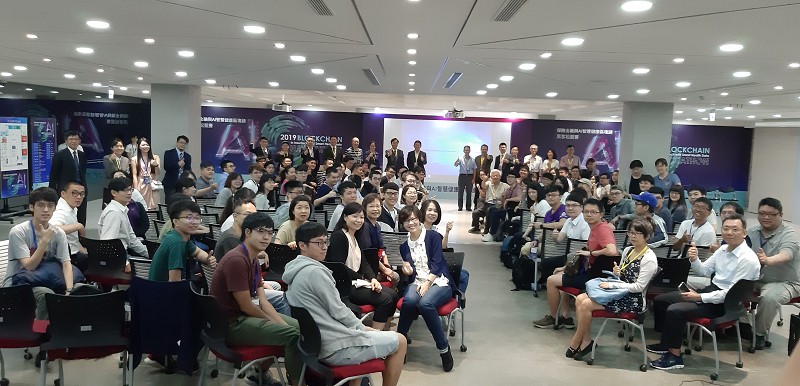 「2019保险金融与AI智慧健康区块链-黑客松竞赛」叁赛各方团队与演讲者贵宾合影。(摄影 / 陈复霞 )