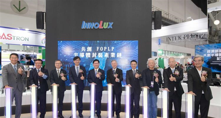 经历台湾半导体、面板产业近年成长趋势此消彼涨之下,经济部也在今年SEMICON TAIWAN携手面板大厂群创光电、强茂半导体、亚智科技与工研院,共同发表「面板级扇出型封装技术」(Fan-out Panel Level Package;FOPLP)成果,期待可藉此活化面板厂既有旧世代产线,转型为具高附加价值的半导体封装产线,并具有成本优势。