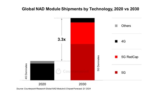 根据Counterpoint研究,预计在2020年至2030年间将以13%的复合年增长率增长,汽车NAD模组出货量将2030年超过7亿台。