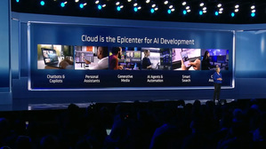 AMD发表了针对企业内部部署优化的Instinct MI440X GPU,并预告将於2027年推出采用CDNA 6架构与2奈米制程的MI500系列。MI500系列结合HBM4E记忆体,预计AI效能将比2023年的MI300X提升达1000倍。这些组件与AMD EPYC Venice CPU及Pensando Vulcano NIC网路卡共同整合於Helios平台中,透过ROCm开放软体生态系统,强化了AMD在超大规模资料中心环境中的竞争力。
